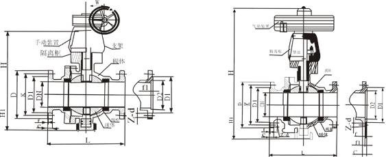 公称压力 | 公称直径DN(mm) | D | D1 | K | L | F | F1 | C | Z-d | H | H1 |