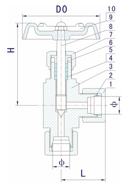 3. 结构特征: 锥面或球面密封,直角式